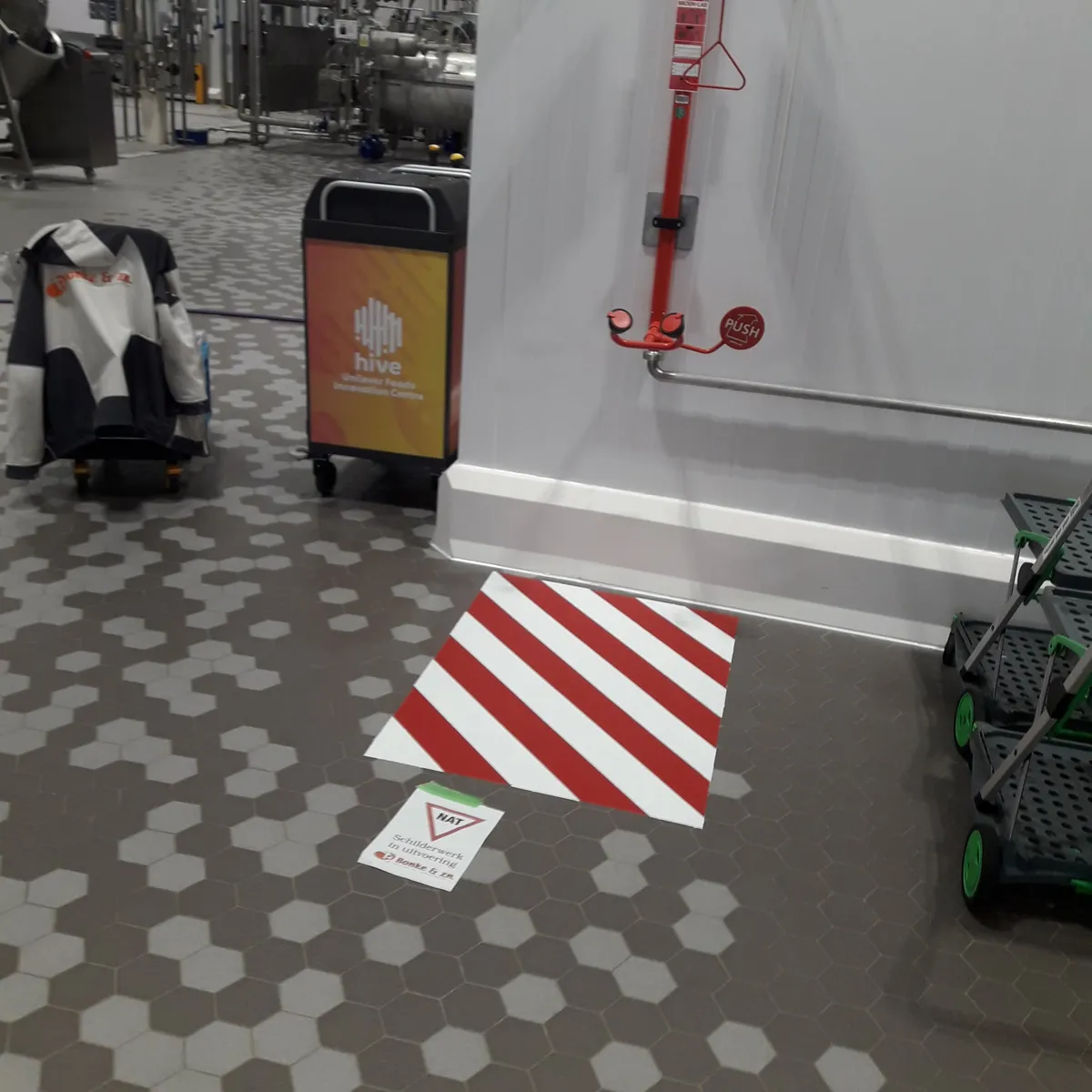 Fabrieken vinden veilig werken steeds belangrijker worden en besteden hier veel aandacht aan. Zo hebben we bij Unilever in wageningen gezorgd voor opvallende markeringen. Uiteraard wil je niet dat deze markeringen snel slijten of verkleuren. Bonke is specialist in het aanbrengen van deze markeringen.
