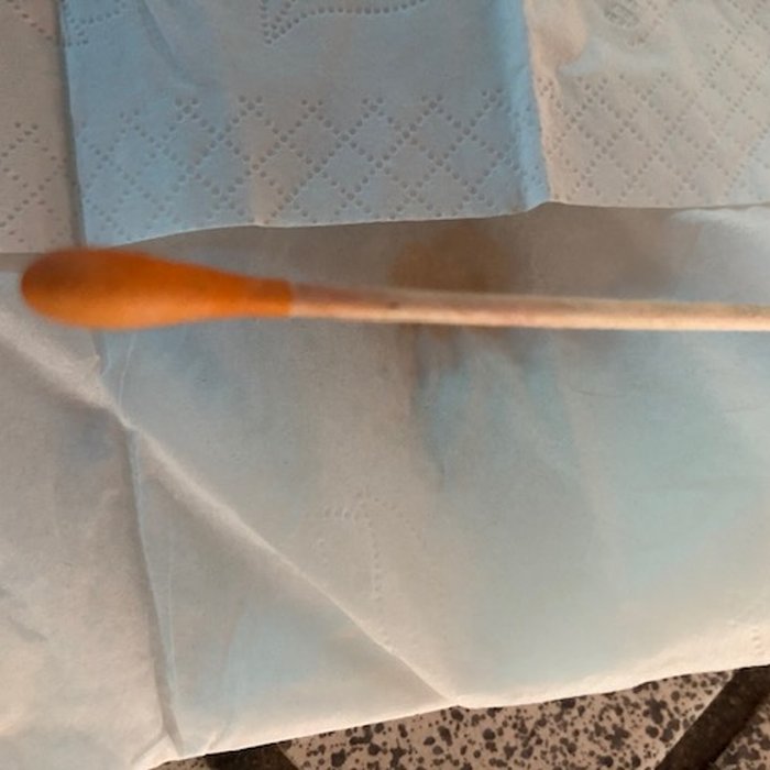 - Als er geen verkleuring is (de teststaaf blijft oranje) is er geen chroom-6 aanwezig.
