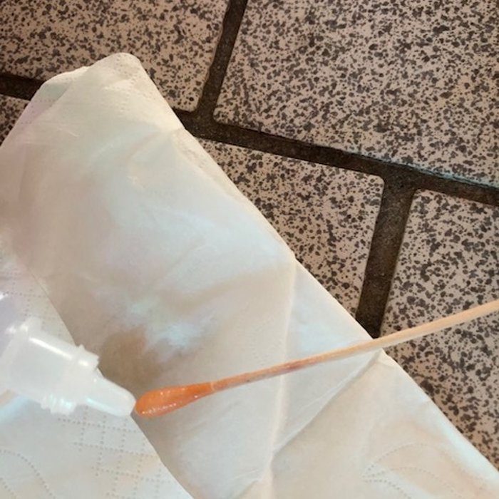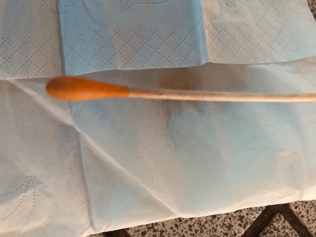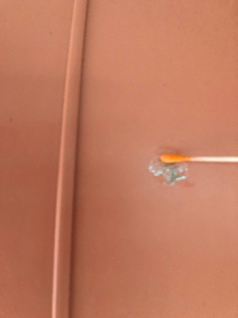Zoals u in de foto’s kunt zien, vind er geen verkleuring plaats en blijft de teststaaf licht oranje. Er is dus geen chroom-6 aanwezig.