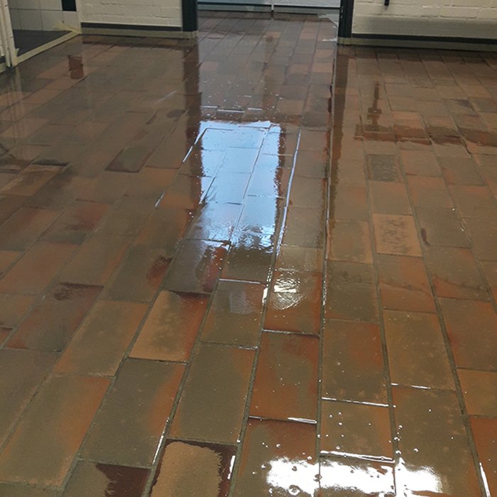 - Als laatste wordt er een coating aangebracht om de vloer te sealen.