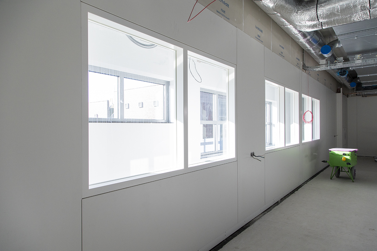 In opdracht van Trebbe zijn wij druk aan het werk op de nieuw te bouwen Centrale Sterilisatie Afdeling (CSA) van het MST. De werkzaamheden die wij op deze locatie uitvoeren zijn de muren van glasvliesbehang en muurverf voorzien, het plaatsen van een groot fotobehang en het leveren en plaatsen van brandwerende,- letselwerende,- en gewone beglazing.