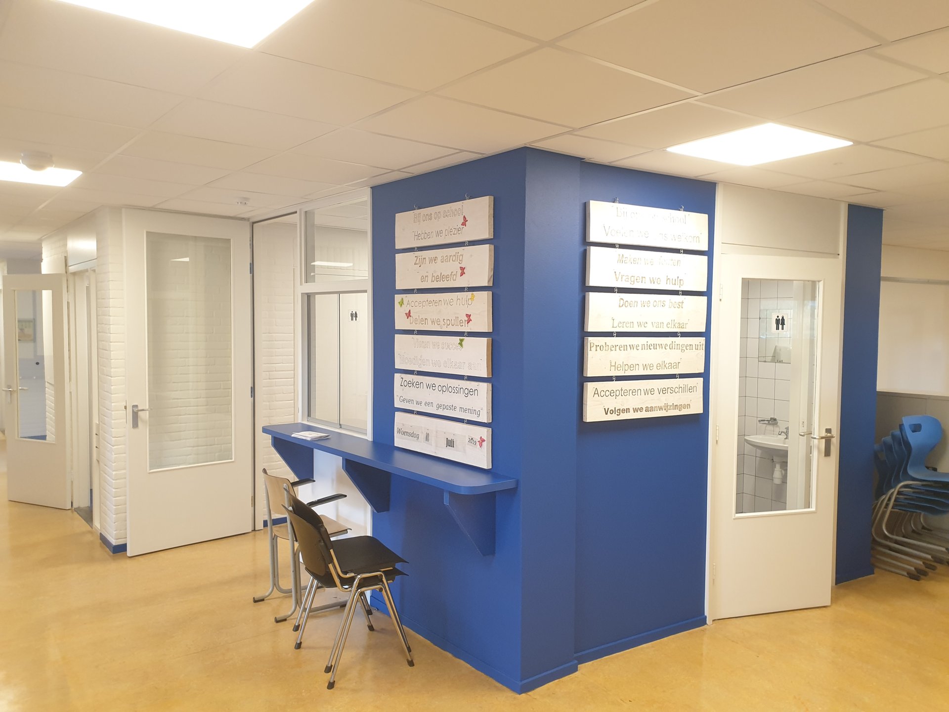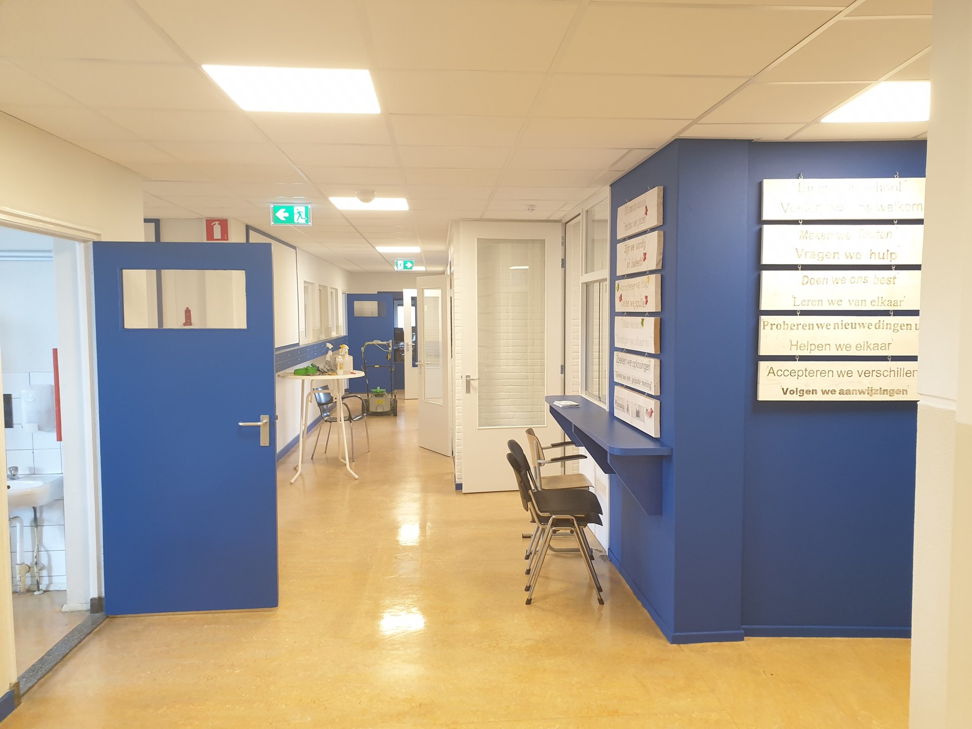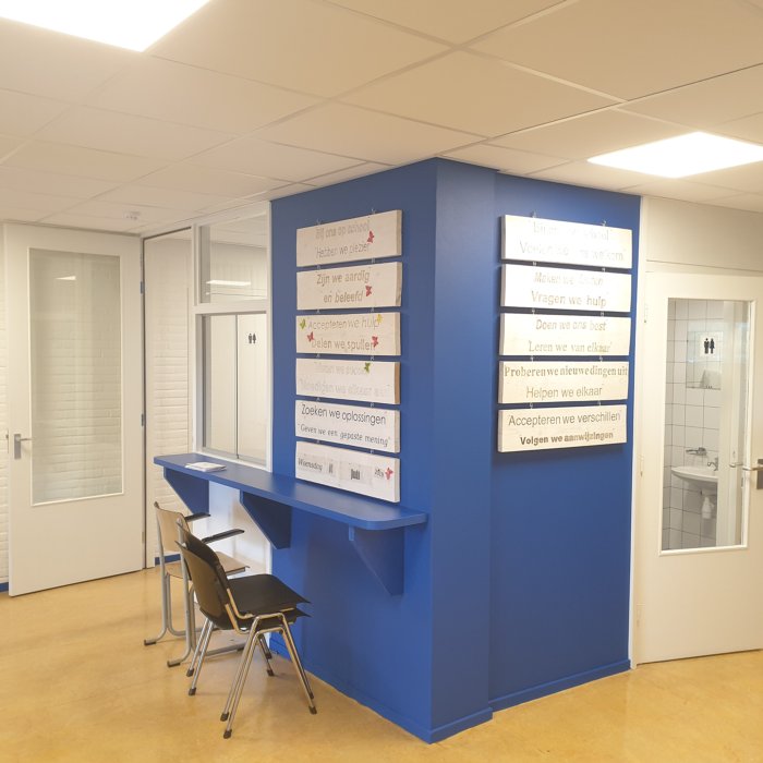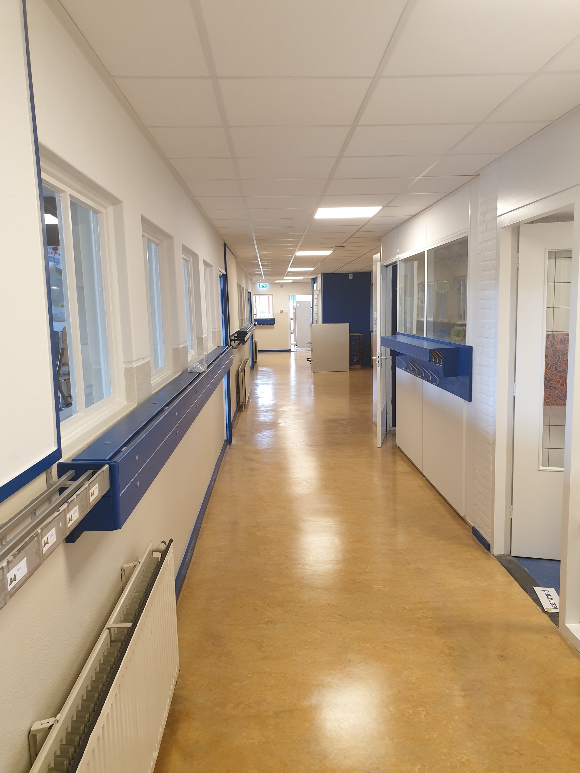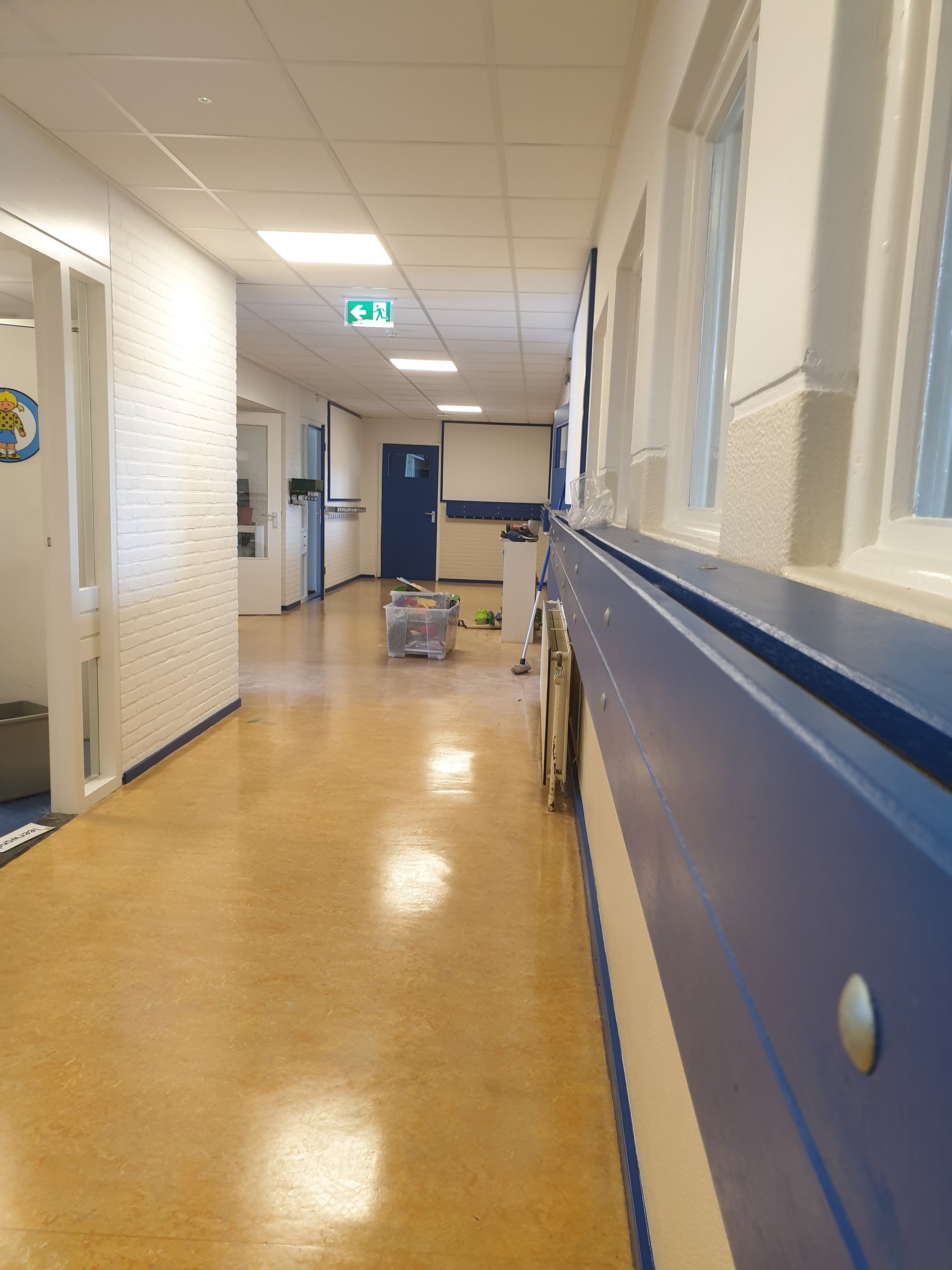 De zomervakantie is het ideale moment om schilderwerkzaamheden bij scholen te doen. In de zomer van 2019 hebben we binnenschilderwerk bij de Prinseschool, locatie Staringstraat, uitgevoerd. Het ging voornamelijk om onderhoud van trap, gangen, deuren en muren. Daar is de boel mooi van opgefrist. De school is weer klaar om haar deuren voor het nieuwe schooljaar te openen.
