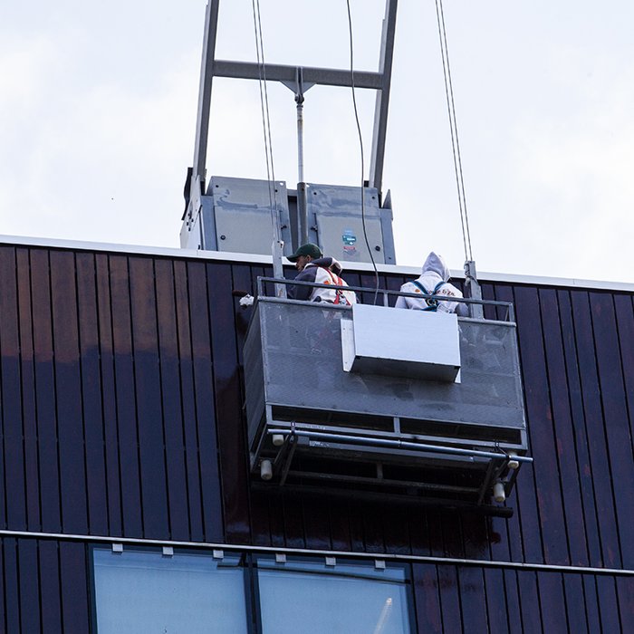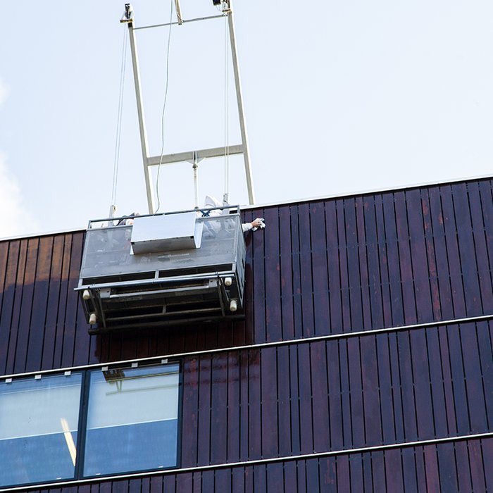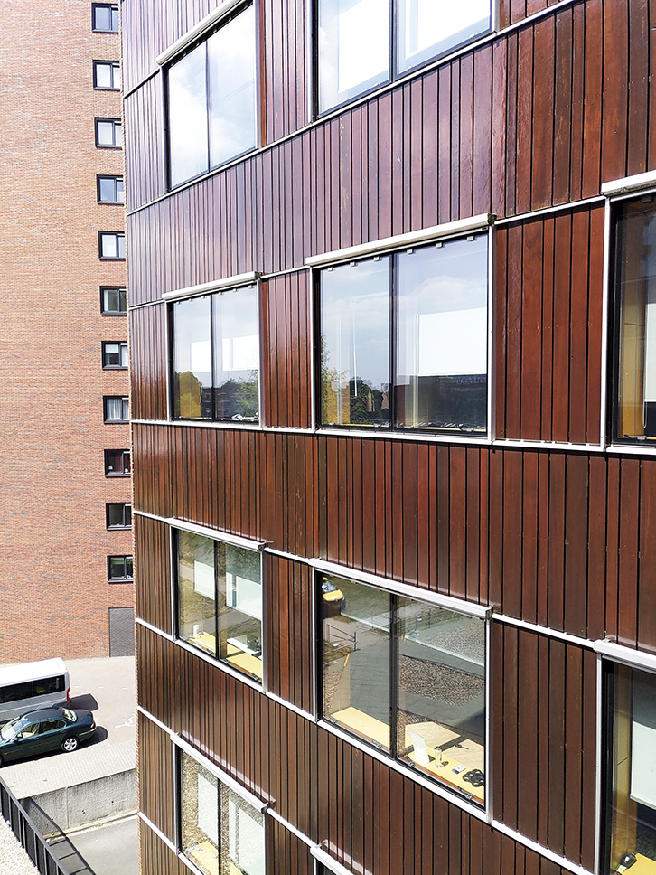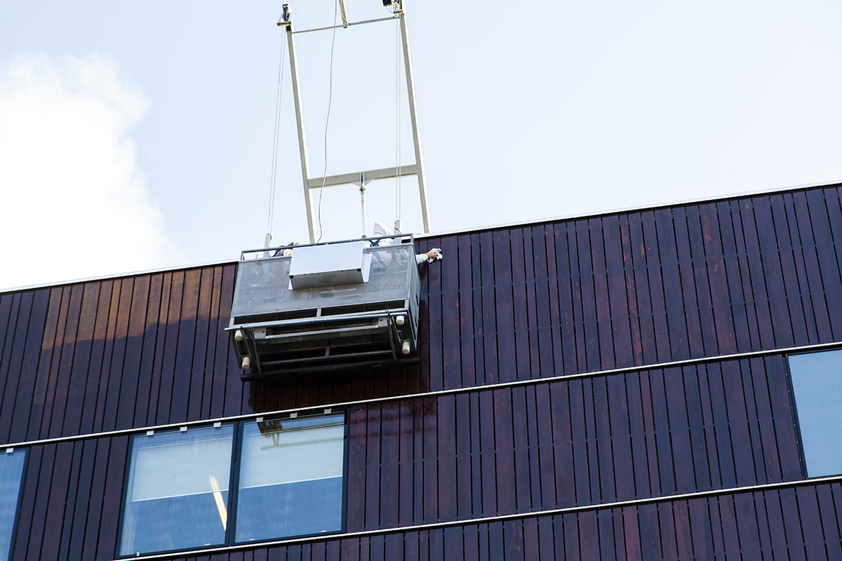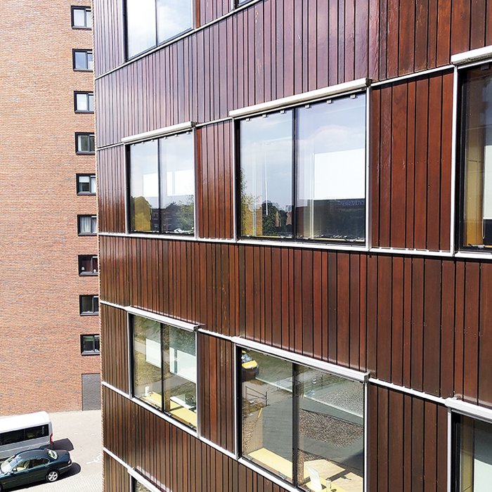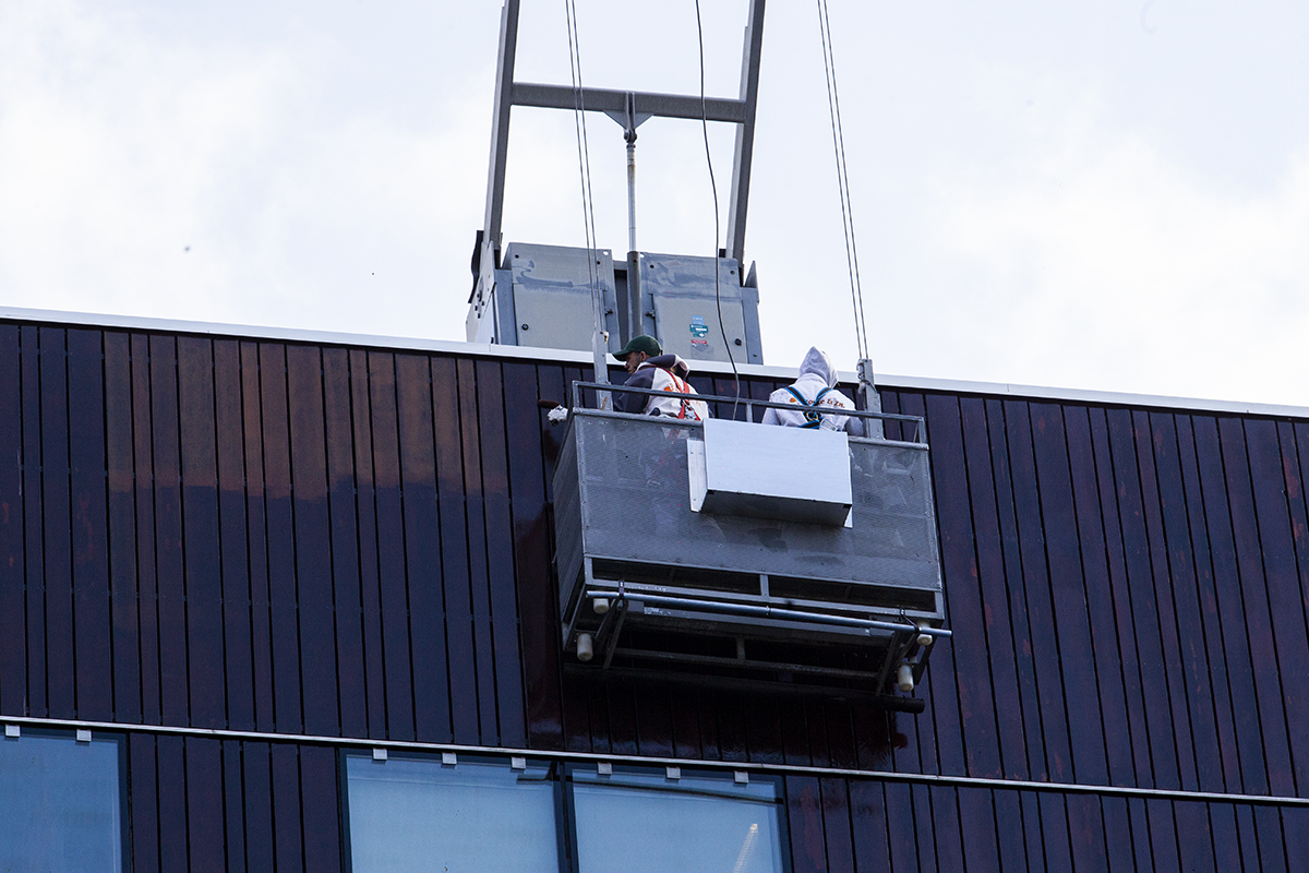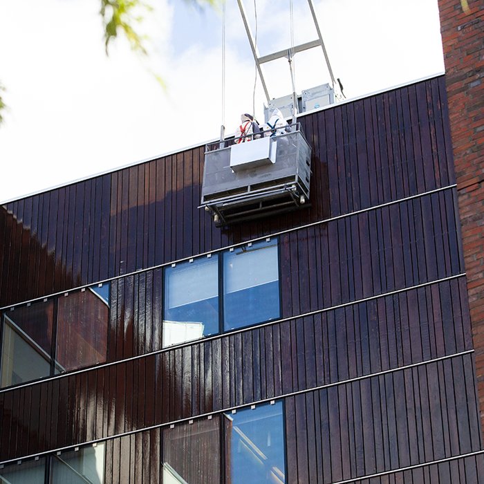 Bij het stadskantoor zijn we bezig geweest met de gevelbetimmering beitsen en de kozijnen schilderen.